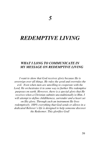 MY MESSAGE ON REDEMPTIVE LIVING