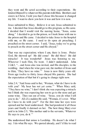 you to do.” All of a sudden He said, “Woman, it’s over. What