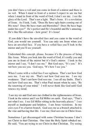 mirror and I say, “I don’t see me.” But God says, “It’s you.” It’s