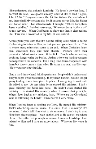 She understood that union is Lordship. He doesn’t do what I say. I