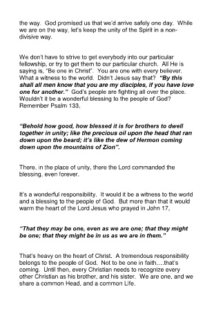 we are on the way, let’s keep the unity of the Spirit in a non-