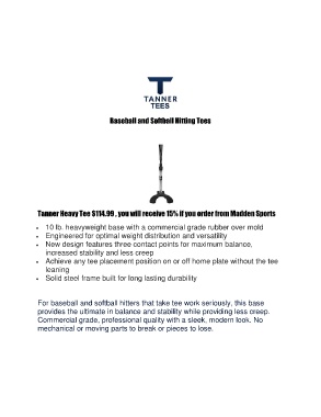 • Achieve any tee placement position on or off home plate without the tee