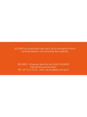 SECUREX est propriétaire des noms, de la conception et de la commercialisation de l’ensemble des matériels. SECUREX – 8 Avenue Jean Monnet 26000 VALENCE http://www.securex-sas.fr Tél : 04 75 25 72 20 – Mail : securex@securex-sas.fr