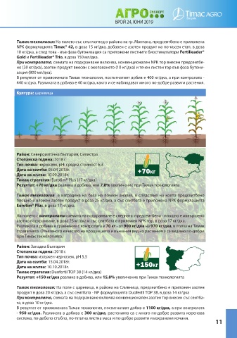 Резултат: +150 кг/дка разлика в добива, или 15,8% увеличение при Тимак технологията