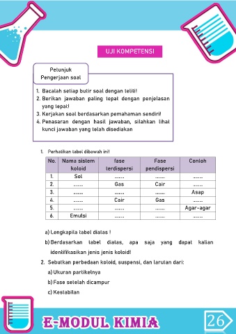 2. Sebutkan perbedaan koloid, suspensi, dan larutan dari: