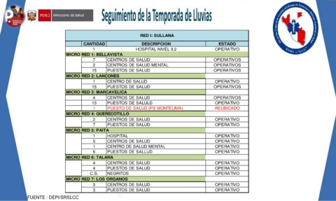 1 PUESTO DE SALUD (PS MONTELIMA) Actualizado al 04 de abril