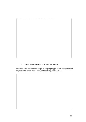 F. SUKU YANG TINGGAL DI PULAU SULAWESI Di daerah Sulawesi terdapat banyak suku yang tinggal antara lain yaitu suku Bugis, suku Mandar, suku Toraja, suku bentong, suku Duri dll. 21
