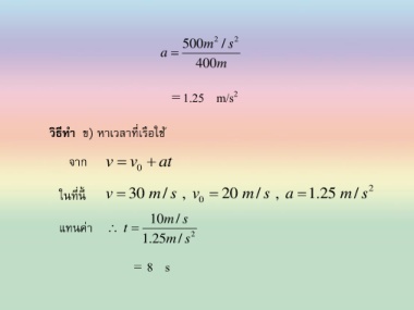 ในที่นี้ v 30 / , m s v 20 / , m 20 / , m s a 1.25 /m s a 1.25 /m s 2