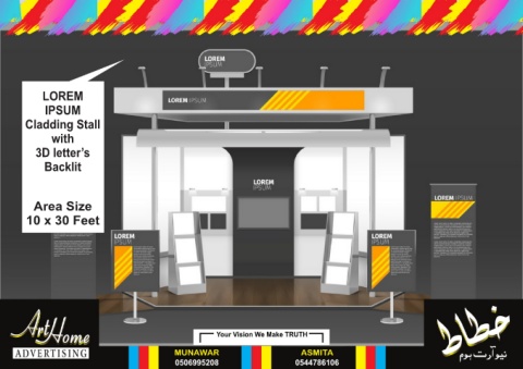 LOREM IPSUM Cladding Stall with 3D letter’s Backlit Area Size 10 x 30 Feet