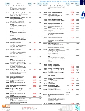 EM 418 Bromo Cresol Purple Azide Broth 35.93 3400 ES 018 Brucella Selec ve Supplement 5 Vials 1100