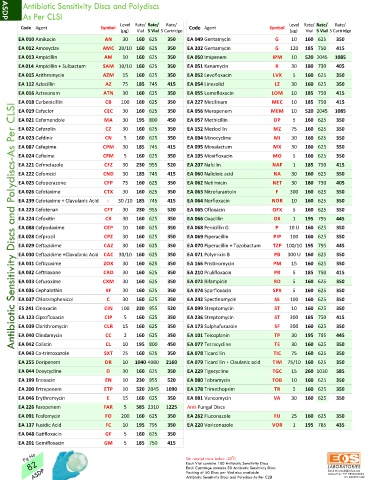 EA 028 Cefprozil CPZ 30 160 625 350 EA 069 Piperacillin PIP 100 160 625 350