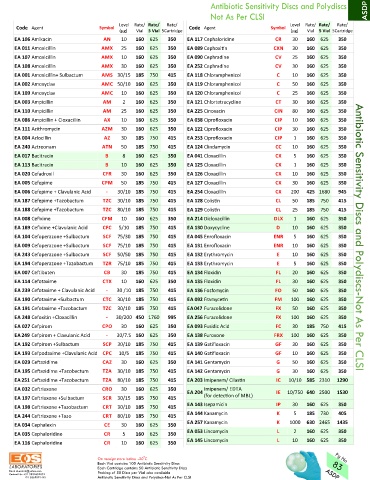 EA 104 Cefoperazone +Sulbactum SCF 75/30 185 750 415 EA 045 Enrofloxacin ENR 5 160 625 350 Antibiotic Sensitivity Discs and Polydiscs-Not As Per CLSI