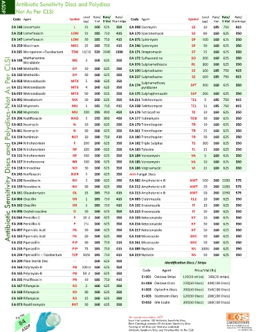 EA 066 Oxacillin OX 1 185 750 415 EA 083 Clotrimazole CLZ 10 160 625 350