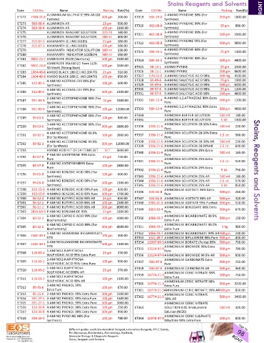 ET  273   569‐58‐4   ALUMINON AR        25 gm    590.00    ET  320   462‐08‐8    3‐AMINO PYRIDINE 99% (For   25 gm    880.00