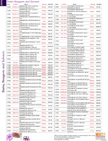 ET 374 3458‐72‐8 Tri‐AMMONIUM CITRATE 98.5% AR 500 gm 900.00 ET 413 3051‐09‐0 AMMONIUM PURPURATE AR (C.I. 100 gm 3500.00