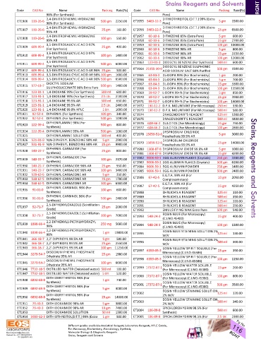 ET1946 7732‐18‐5 DISTILLED WATER (Deionised water) 500 ml    100.00  ET1999 17372‐87‐1   (For Microscopy) (C.I.NO.45380)    25 gm  260.00