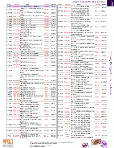 ET 4870 TARTAZINE SOLUTION 500 ml 450.00 ET 4905 14937‐42‐9 TETRADECYL AMMONIUM BROMIDE 10 gm 8800.00
