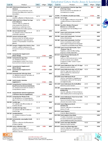 EM 1652 Campylobacter Enrichment Broth 25.00 3800 EM 1369 Casein Hydrolysate Broth,Modified 20.50 3000
