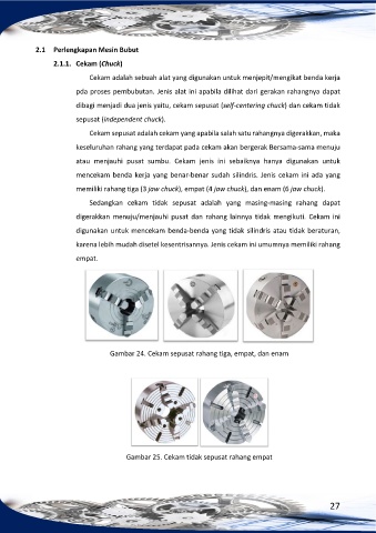 dibagi menjadi dua jenis yaitu, cekam sepusat (self-centering chuck) dan cekam tidak
