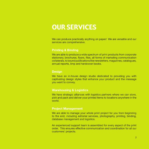 collaterals, to bound publications like newsletters, magazines, catalogues,