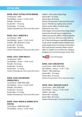 Kuota Min : 8 orang Level Siswa : SMP DAN SMA