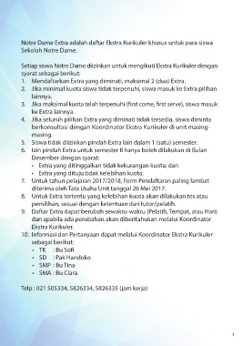 Notre Dame Extra adalah daftar Ekstra Kurikuler khusus untuk para siswa