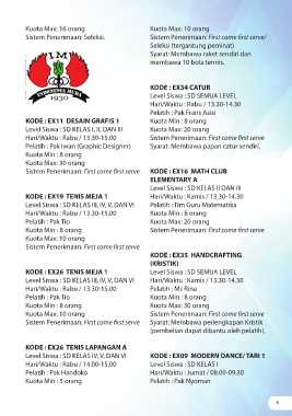 KODE : EX19 TENIS MEJA 1 Hari/Waktu : Kamis / 13.30-14.30