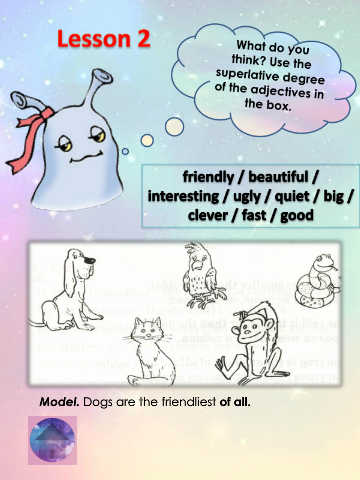 tall / short / young / old / naughty / lazy / noisy / funny Model. Masha is the cleverest pupil in my class.