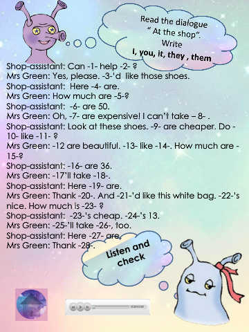 1. How much is these trainers? 2. What colour are this blouse? 3. That gloves are cheap. 4. It’s the most expensivest jacket? 5. Those sweater is warm.