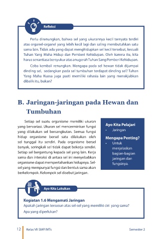 yang bervariasi. Ukuran sel mencerminkan fungsi Ayo Kita Pelajari