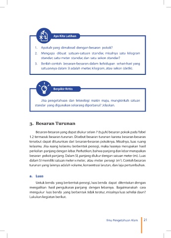 tersebut dapat diturunkan dari besaran-besaran pokoknya. Misalnya, luas ruang