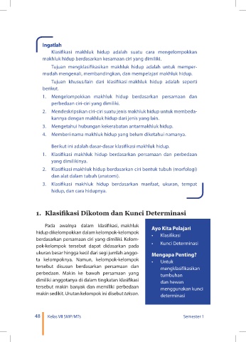 1. Mengelompokkan makhluk hidup berdasarkan persamaan dan