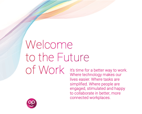 Welcome to the Future of Work It’s time for a better way to work. Where technology makes our lives easier. Where tasks are simplified. Where people are engaged, stimulated and happy to collaborate in better, more connected workplaces.
