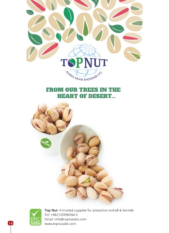 FROM OUR TREES IN THE HEART OF DESERT... Top Nut- A trusted supplier for pistachios inshell & kernels Tel: +982133996094-5 Email: info@topnutakk.com 15 www.topnutakk.com