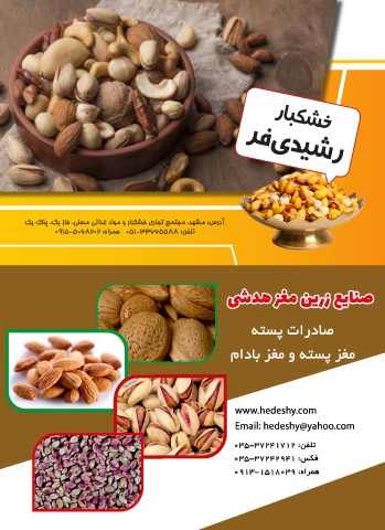 رابکشخ رف یدیشر کی کلاپ ،کی زاف ،یلصم یئاذغ داوم و رابکشخ یراجت عمتجم ،دهشم :سردآ 0915-5068202 :هارمه 051-33665588 :نفلت