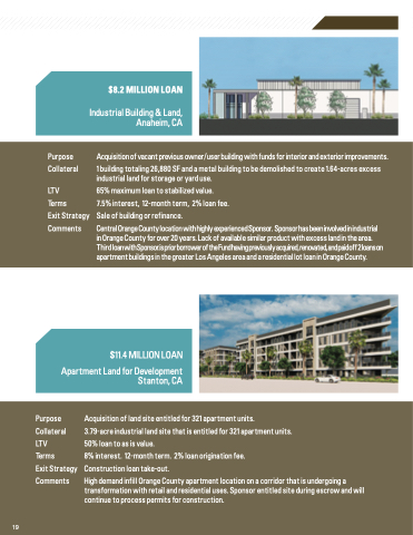 F Collat ral LTV Te LTV Terms rate y Commen s Provid financ ng for co str ction of one s ngl tenant indust ial buildi g.