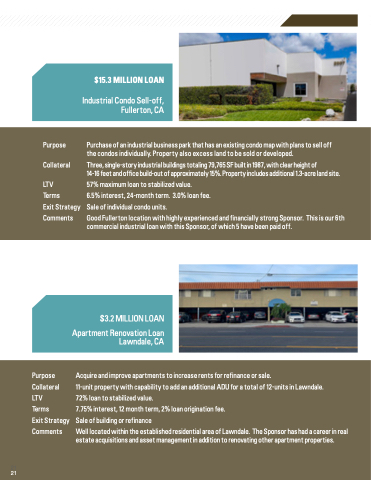 Purpose Collateral LTV Terms s Ac Comments ed apartmen l nd site nd proces ing f bu ng ldi g permits.
