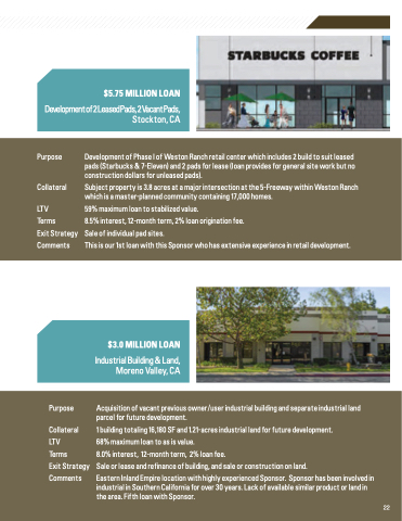 ial Reno ti , Purpose Collateral LTV Terms Exit Strategy Comments WILLIAMS ROTH GROUP