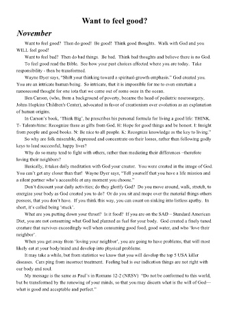 Want to feel good? Then do good! Be good! Think good thoughts. Walk with God and you