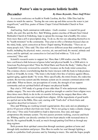 health, she said. She and the Rev. Bob Whiting, pastor emeritus of Mount Zion United