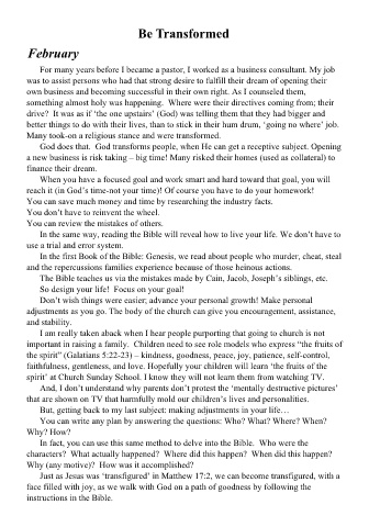 adjustments as you go. The body of the church can give you encouragement, assistance,