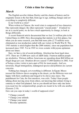 Crisis a time for change
