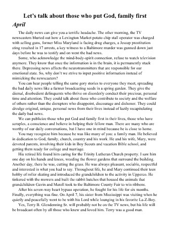 Yes, Terry B. Glendenning Sr. will probably not be on the TV news, but his life will
