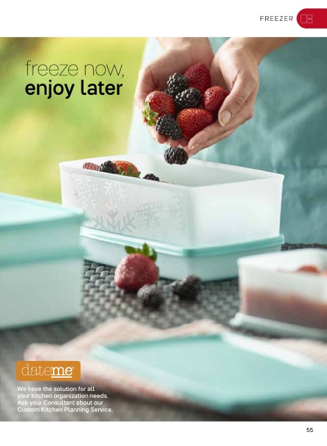 FREEZER freeze now, enjoy later We have the solution for all your kitchen organization needs. Ask your Consultant about our Custom Kitchen Planning Service. 55