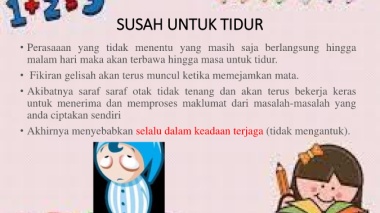 • Fikiran gelisah akan terus muncul ketika memejamkan mata.