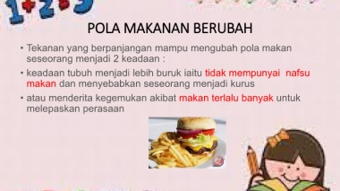 • Tekanan yang berpanjangan mampu mengubah pola makan