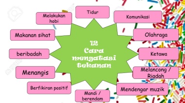 Tidur Melakukan Komunikasi hobi Makanan sihat Olahraga 12 Cara beribadah Ketawa mengatasi tekanan Menangis Melancong / Riadah Berfikiran positif Mendengar muzik Mandi / berendam