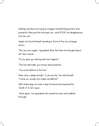Wee took a deep breath. “I can do this,” he told himself. “Come on, woolly hat, make me BRAVE.”