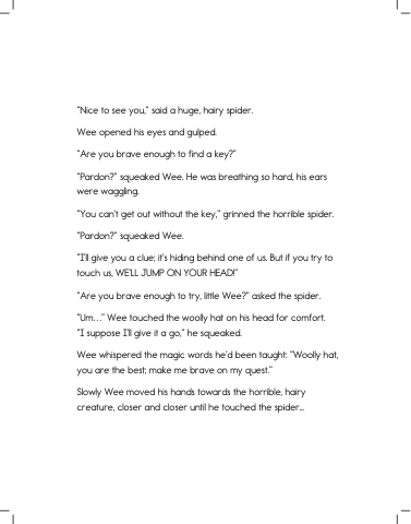 “You can’t get out without the key,” grinned the horrible spider. “Pardon?” squeaked Wee.