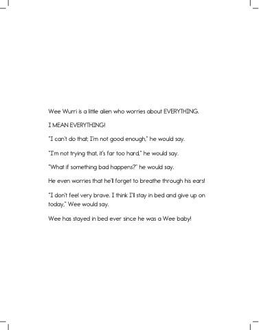 Wee Wurri is a little alien who worries about EVERYTHING. I MEAN EVERYTHING!